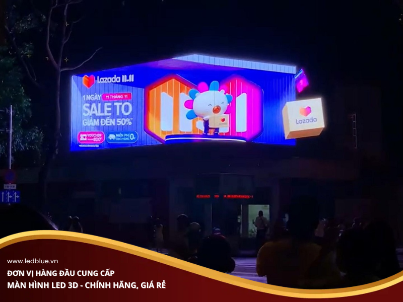 Ví dụ, Lazada đã sử dụng màn hình quảng cáo ngoài trời với hiệu ứng 3D sống động cho chiến dịch “1 ngày 11.11 sale to giảm đến 50%”.